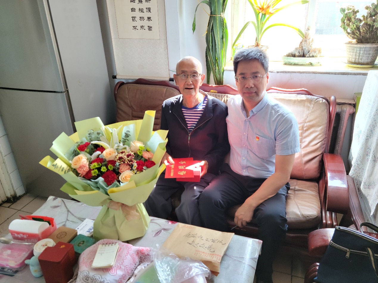 在“七一”即将来临之际,6月29日上午,皇冠welcome体育登录入口党委书记朱保华同志带队赴内蒙古大学北校区家属区慰问原化学系退休“光荣在党50年”老党员赵文亮老师。