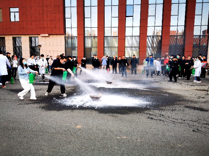 2023年3月30日皇冠welcome体育登录入口联合保卫处及实验室及实验设备管理中心三家单位共同组织举办主题为化学实验室突发火灾事故中的消防应急演练,特聘请内蒙古消防安全行业协会教官现场讲解和演示消防安全知识,学院党委书记朱保华做了演习动员讲话。消防演练分三部分: