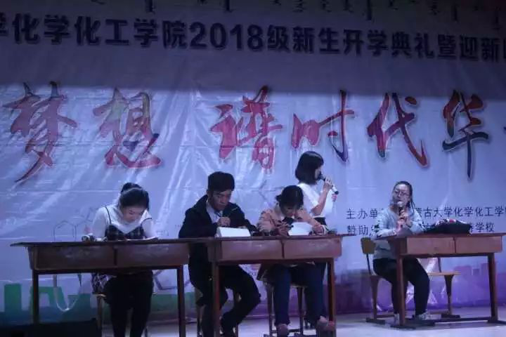 出席本次迎新晚会的嘉宾有:内蒙古大学学生工作处副处长周国权老师、皇冠welcome体育登录入口党总支书记杨俊峰老师、副院长张浩教授、副院长陈树峰教授、副院长白凤华教授、本科生辅导员赵永亮老师、研究生辅导员于世泳教授、研究生辅导员赵薇老师、团总支书记兼学工办主任杨文超老师、团总支吕梦瑶老师、2018级化学基地班主任胡剑锋老师、2018级应用化学班主任吴海霞老师、2018级化学工程与工艺班主任郝海刚老师、2018级材料化学班主任薛辉老师。同时,各兄弟学院、内蒙古大学各学生组织也来到了晚会现场,共同欣赏了这独一无二的精彩盛宴。