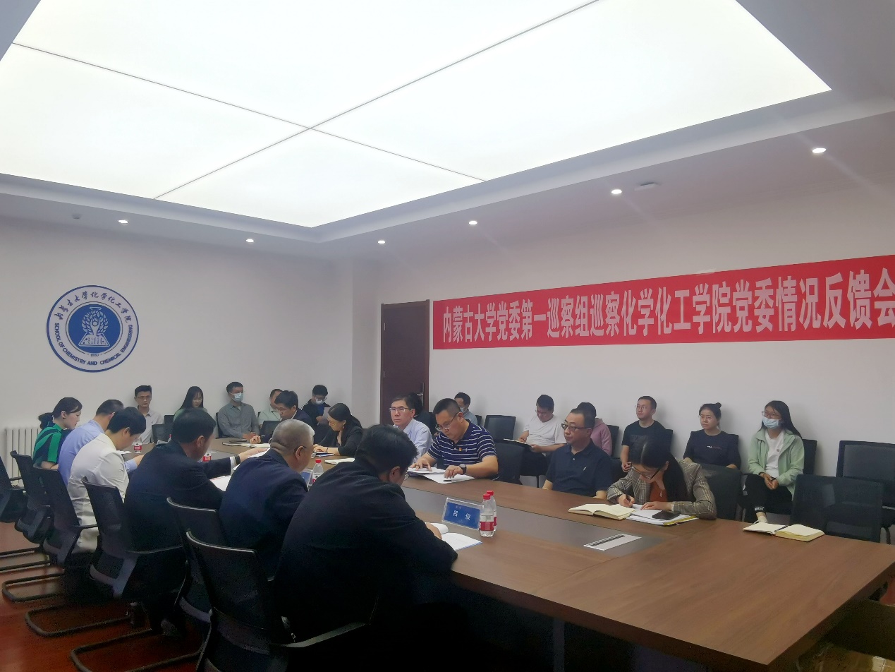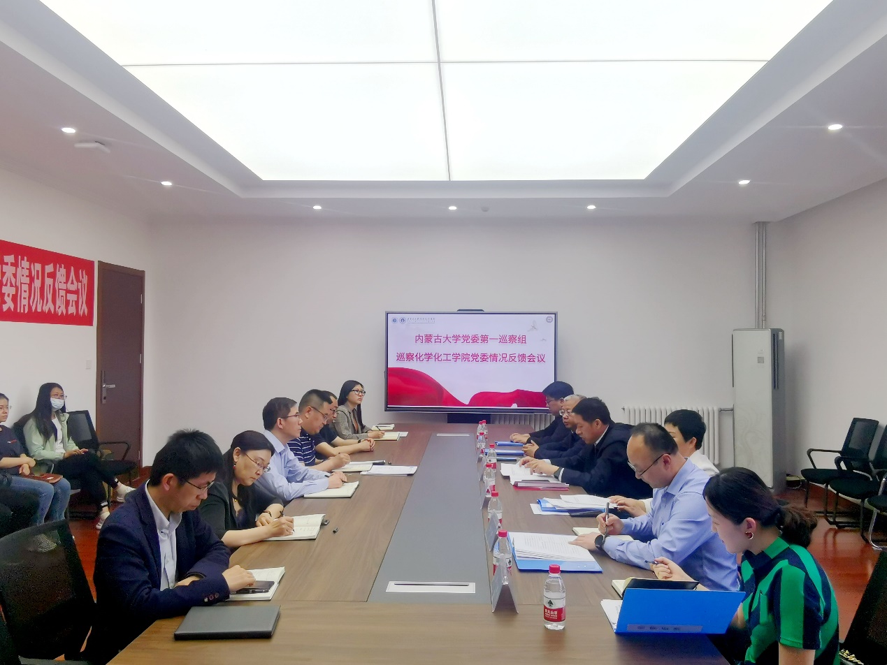 5月25日下午,按照学校党委统一部署,内蒙古大学党委第一巡察组向皇冠welcome体育登录入口党委反馈巡察情况。组长阿云嘎代表巡察组分别向学院党委副书记温海鹏、学院党政领导班子及教职工代表反馈巡察情况,校党委副书记、党委巡察工作领导小组副组长刘九万对巡察整改工作提出要求,学院党委副书记温海鹏主持会议并作表态发言。