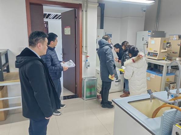 皇冠welcome体育登录入口在2024年1月31日由刘健院长带队,白凤华、褚海斌、王建国副院长以及学院实验室安全检查组对所有实验室进行了一次全面的实验室安全隐患排查并将已结束实验的实验室贴封条进行假期封闭。这次检查的目的是保障师生的生命安全和实验室财产的安全,确保所有实验室寒假期间安全稳定运行。