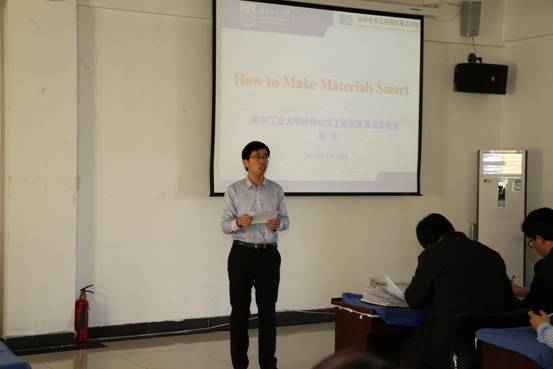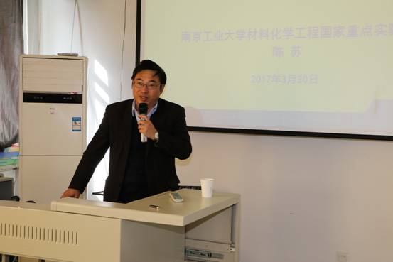 2017年3月30日下午,南京工业大学皇冠welcome体育登录入口副院长陈苏教授访问我校皇冠welcome体育登录入口,并在桃李学术论坛做了题为“How to Make Materials Smart”的学术报告。报告会由皇冠welcome体育登录入口院长助理褚海斌教授主持。皇冠welcome体育登录入口院长张军教授与学院20余位教师参加了报告会。报告会还吸引了100余位研究生的参与。陈苏教授的报告围绕smart材料的设计与应用,深深地吸引了到场的老师和同学,报告之后的讨论持续了近一个小时仍意犹未尽。会后陈苏教授参观了皇冠welcome体育登录入口,并与学院部分教师代表进行了座谈。