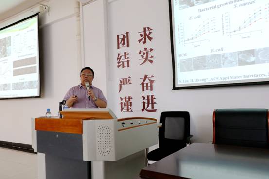 2018年5月17日,中科院张海元研究员访问我校皇冠welcome体育登录入口,并在桃李学术论坛做了题为“纳米材料能带电子特性引发的生物效应及其生物医学应用”的专题报告会,皇冠welcome体育登录入口院长张军教授、褚海斌教授、于世泳教授等学院十多位教师与研究生参加了报告会。报告之后,张海元研究员又就相关学术问题与皇冠welcome体育登录入口师生进行了深入的讨论。