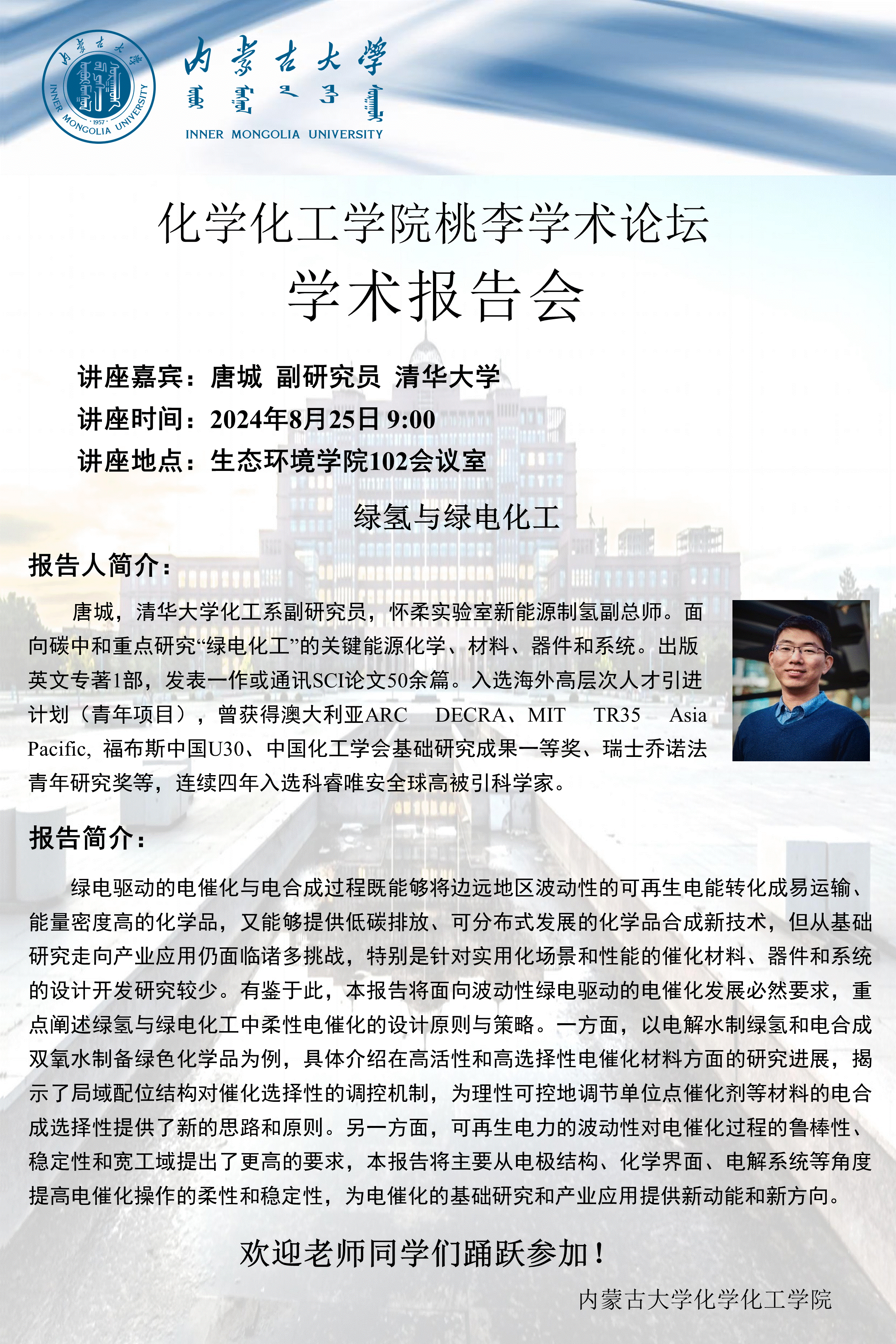 皇冠welcome体育登录入口桃李学术论坛——绿氢与绿电化工 唐城 副研究员 清华大学