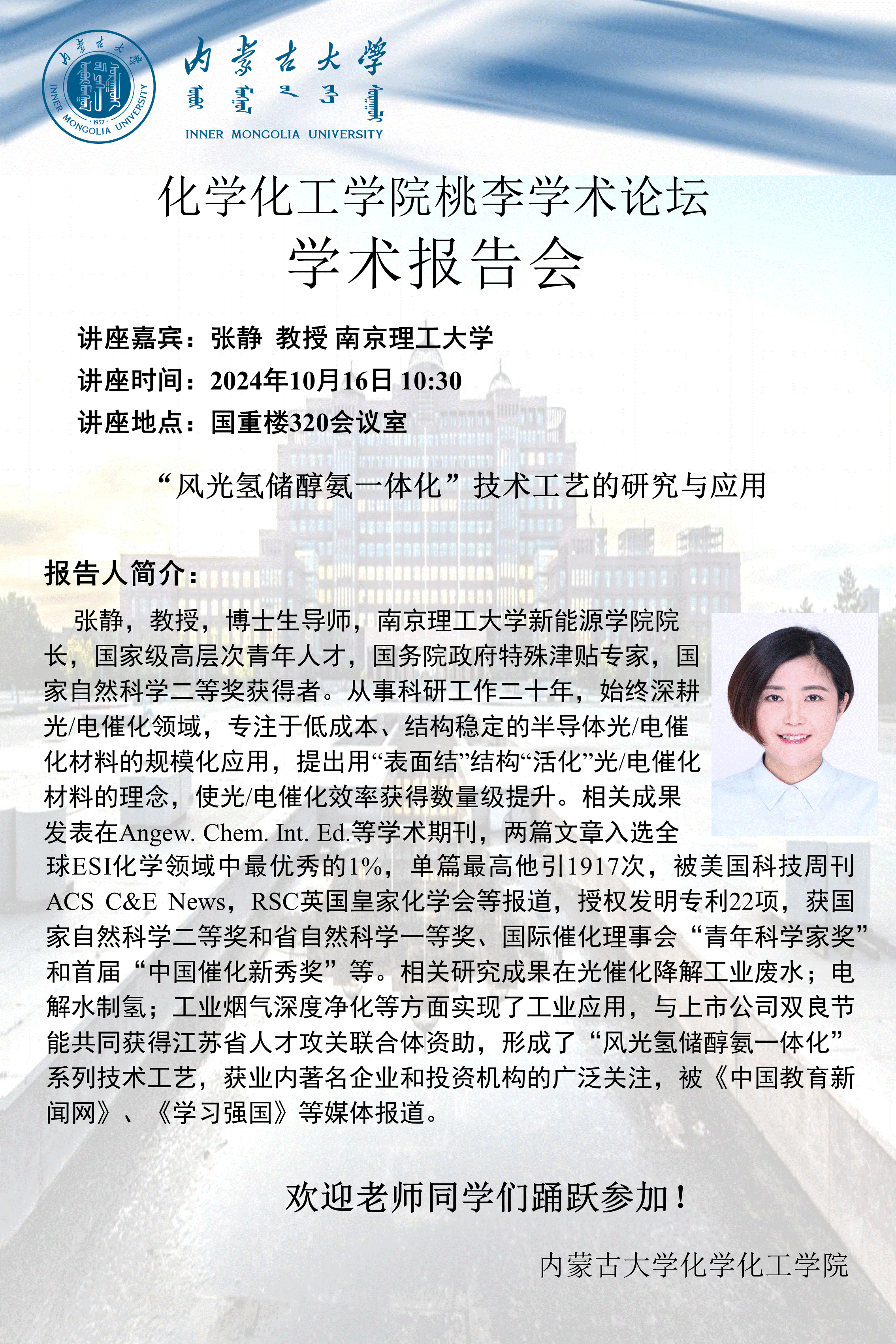 皇冠welcome体育登录入口桃李学术论坛——“风光氢储醇氨一体化”技术工艺的研究与应用 张静 教授 南京理工大学